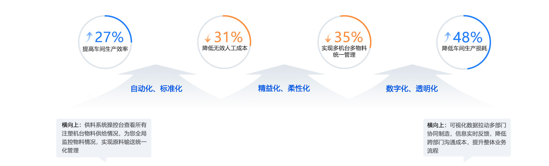 4. 統一輸送原料保證注塑機得到供給,效率高提高生產效率替代傳統1臺注塑機+1臺吸料機做法,節省35%損耗
